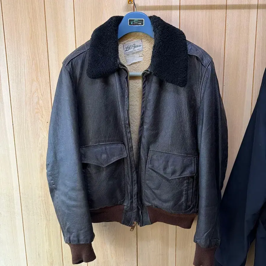 다크 브라운 색상의 가죽 플라이트 자켓입니다. 보아 카라가 부착되어 있어 보온성이 뛰어납니다. - 브랜드: L.L.Bean - 색상: 다크 브라운 - 소재: 가죽 - 옷깃 소재: 보아 - 스타일: 플라이트 자켓 - 포켓: 2개의 프론트 포켓 방문해 주셔서 감사합니다.