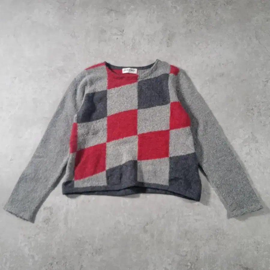 • CHIC MUSE 체크 무늬 빨간색 니트 스웨터 루즈핏