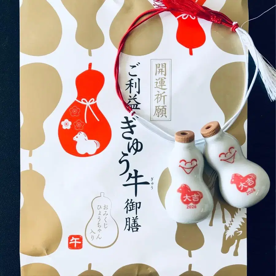 개운 기원 효능이 있는 소御전과 함께 제공되는 오미쿠지 효짱 대길 2개 세트입니다. 내용물인 간장은 빼내고 세척하여 건조했습니다. 즉시 구매 가능합니다. 잘 부탁드립니다.