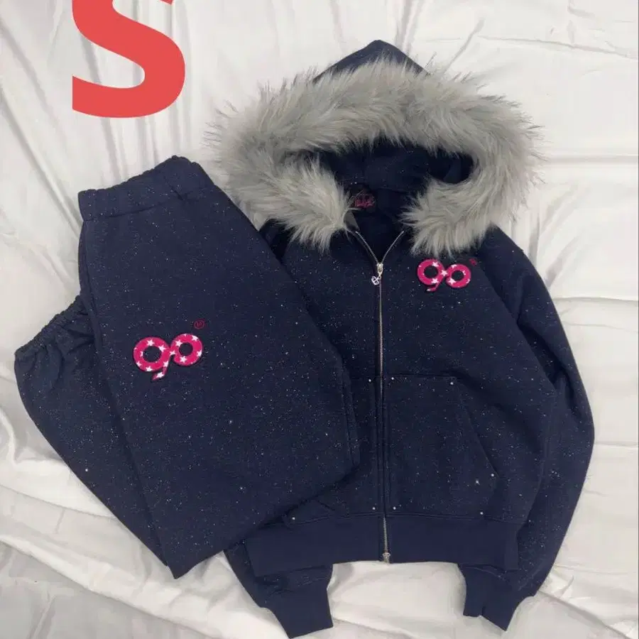 90 Logo Glitter Fur Zip Hoodie x Pants