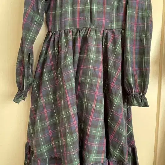 빔즈 원피스 파랑 안감 부착 크루넥 뒷단추 풀오버 긴팔