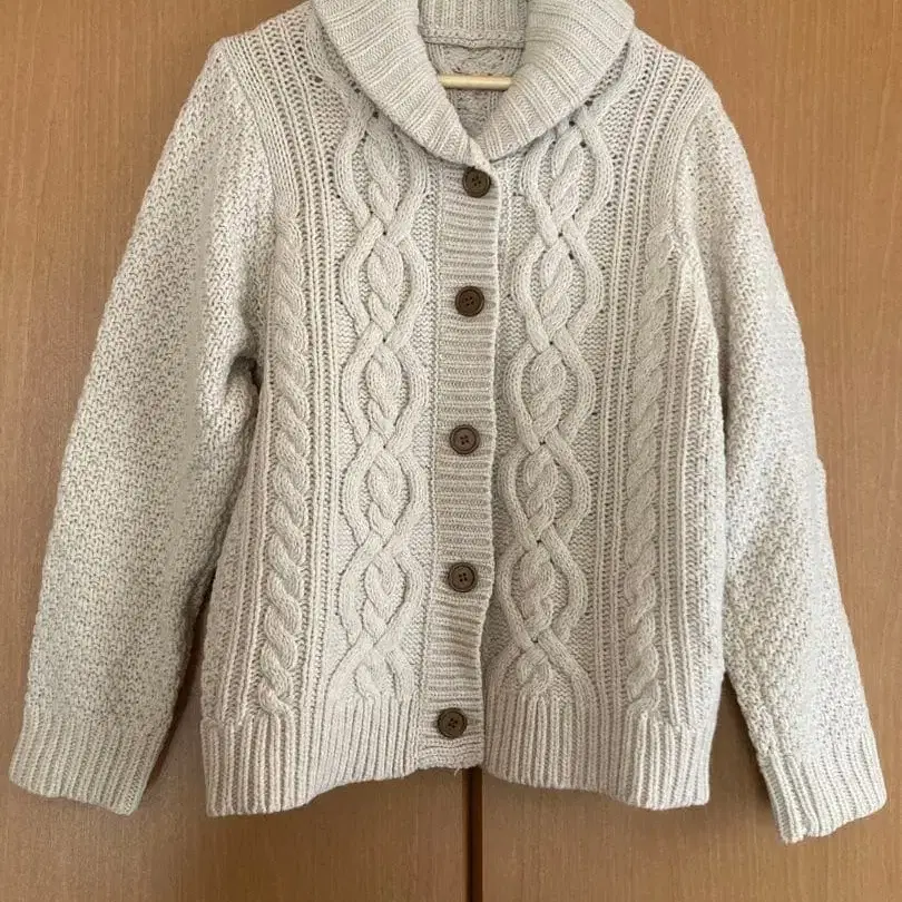 [ 새상품급 ] 어패럴 메이드 울 100% 우드 단추 케이블 니트 가디건