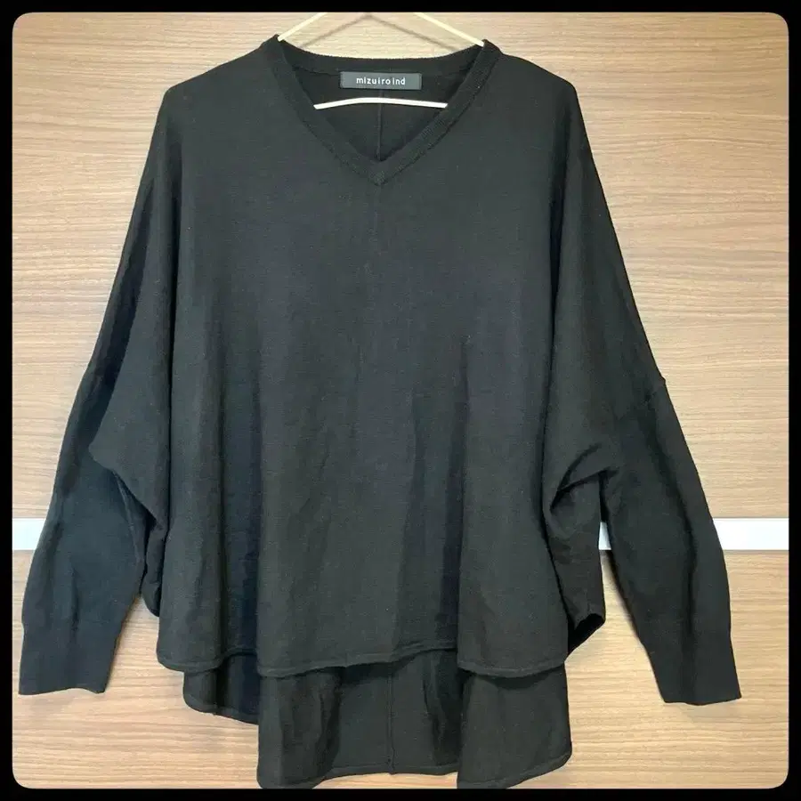 미즈이로 인드 돌먼 니트 얇은 소재 V넥 블랙
