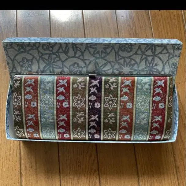 타츠무라 미술 직물풍 패턴의 일본 의류용 클러치백입니다. 내부 포켓 있음, 양면 손거울 포함 사이즈 약 25 x 12 x 3.5 cm입니다. 자택 보관이므로 이해하시는 분은 잘 부탁드립니다.
