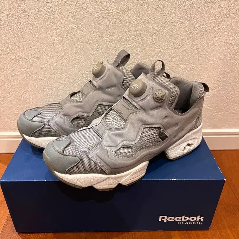 Instapump Fury. 색상은 그레이 박스 등 포함되어 있습니다. 신은 횟수도 많지 않고, 밑창에 사용으로 인한 얼룩은 있지만, jacksonmarkk에서 정기적으로 세척했기 때문에 깨끗한 상태라고 생각합니다. 중고품이라는 것을 이해하시고 구매 부탁드립니다.