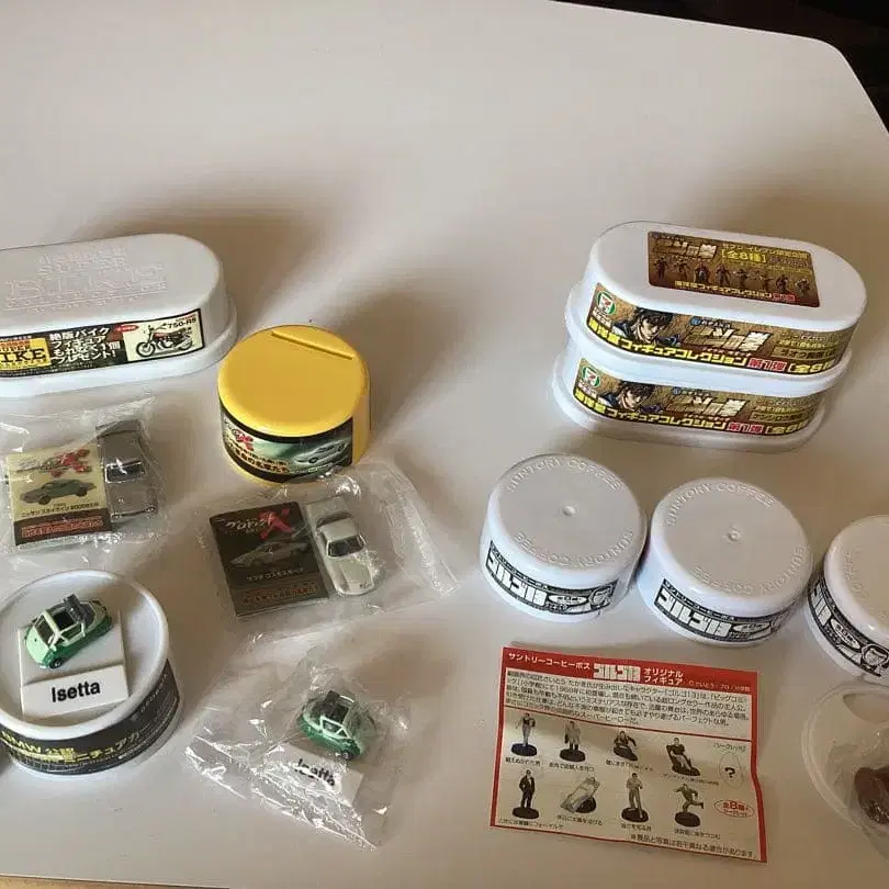 옛날 캔 커피에 포함되어 있던 덤입니다. 내용물은 미개봉 새상품이지만, 외부 박스는 연식이 있어 그에 따라 색이 바랬습니다. 사진에 있는 것이 전부이며, 낱개 판매는 하지 않습니다. 세븐일레븐 한정 기획 북두의 권 카이요도 피규어 컬렉션 (켄시로 거상, 라오 거상) 골고 13 오리지널 피규어 산토리 커피 보스 (시크릿 3개) 조지아 BMW 공인 미니어처 카 9 이세타 (1/100 scale) (미개봉 1개와 덤 2개) 프로젝트 X 전설의 명차 (마쓰다 코스모 스포츠 닛산 스카이라인 2000GT-R) 다시 살아나는 절판 명차 슈퍼 바이크 컬렉션 (KAWASAKI 750-RS)