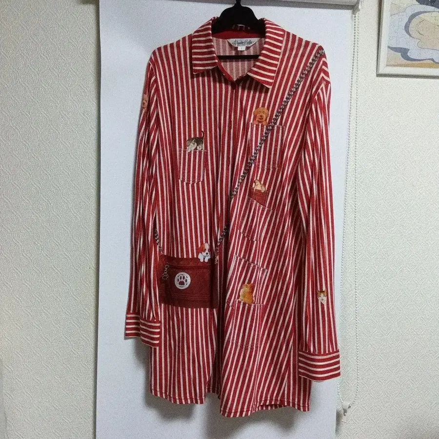 강아지 자수와 포켓이 특징인 레드 화이트 스트라이프 긴팔 셔츠. - 브랜드: 쿠니오 컬렉션 - 색상: 레드 화이트 스트라이프 - 디자인: 강아지 자수와 포켓 부착 - 사이즈: L 신축성이 있습니다. 입을 기회를 놓쳐서 깨끗하다고 생각합니다 (2회 정도). 방문해 주셔서 감사합니다.