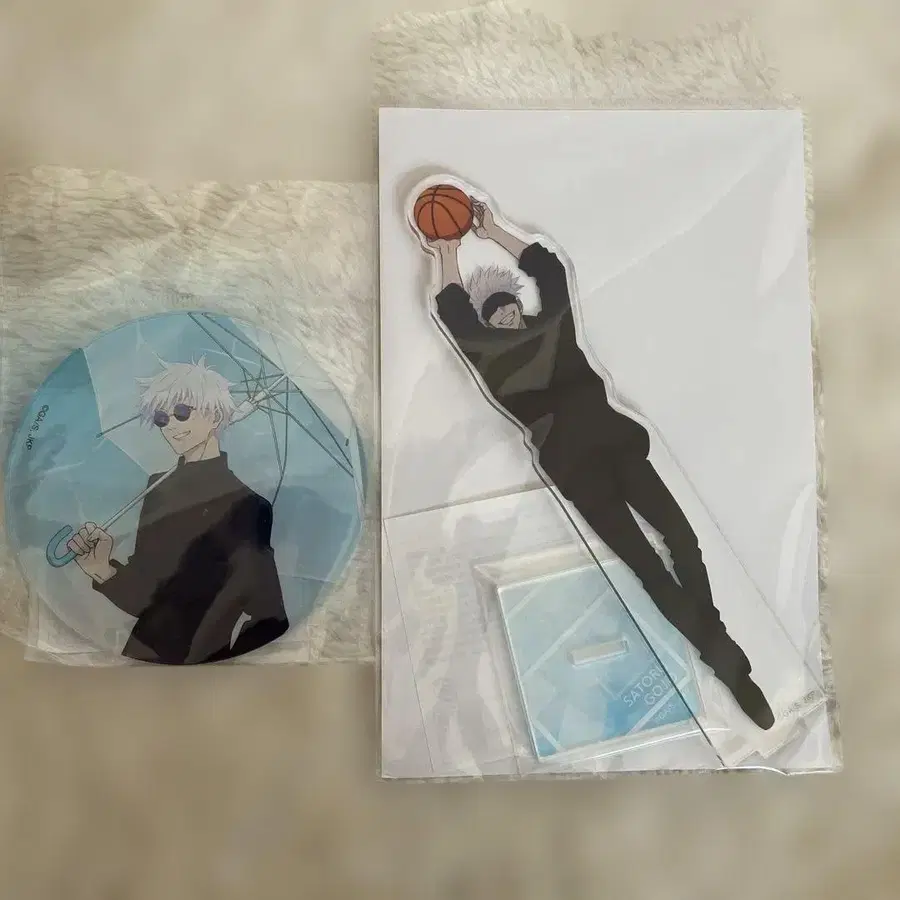 고죠 사토루 아크릴 스탠드, 농구를 들고 있는 디자인과 아크릴 코스터 2개 세트입니다. 새상품, 미개봉입니다.