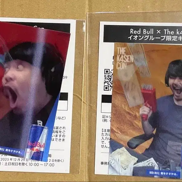 즉시 구매 ⭕️ 중복되어 판매합니다. Red Bull x The k4sen Con 2025 이온 그룹 한정판 콜라보 캠페인 렌티큘러 카드 2장 세트 습기 방지, 양면 종이상자 보강하여 메루카리 택배로 발송해 드립니다. k4sen Thek4sen RedBull 레드불