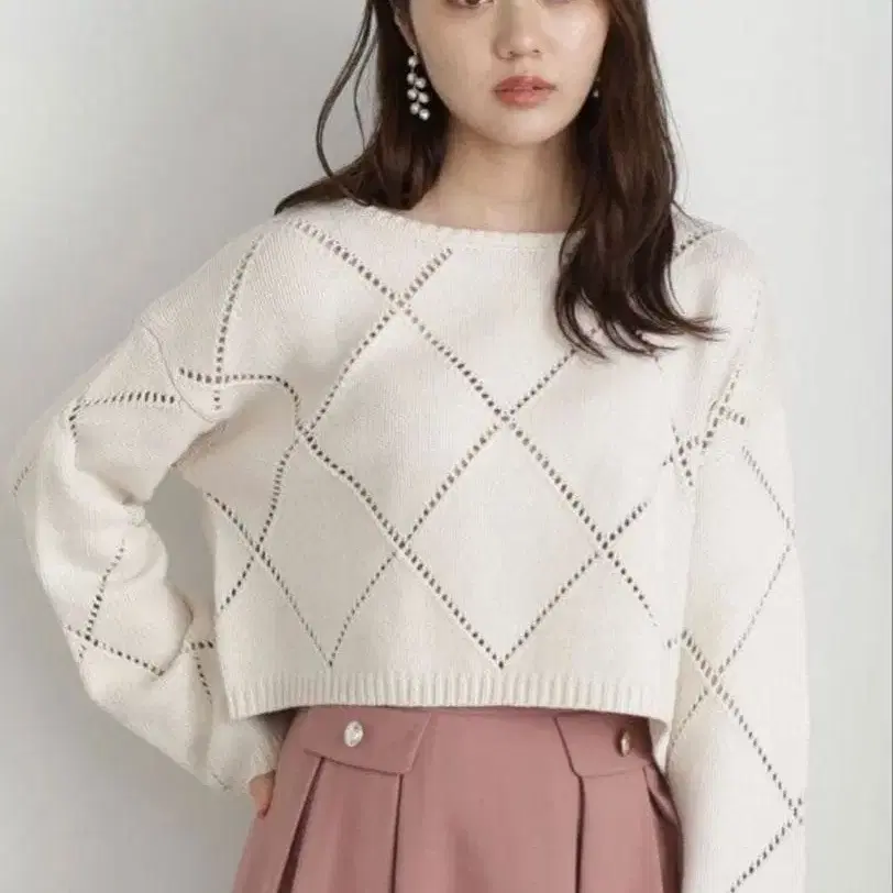 다이아몬드 짜임의 아이보리 크롭 니트입니다!