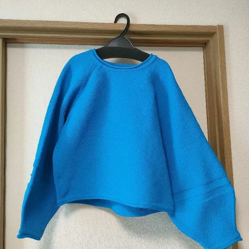 고품질 ti. 티 [ S ] 울 혼방 니트 블루 드롭 숄더 큼직한