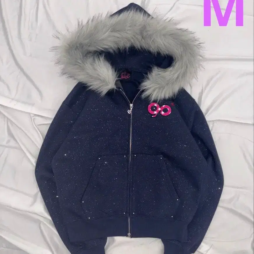 90 로고 글리터 퍼 집 후디 새상품 사이즈 M 매장에서 구매 잘 부탁드립니다 사이즈 - M