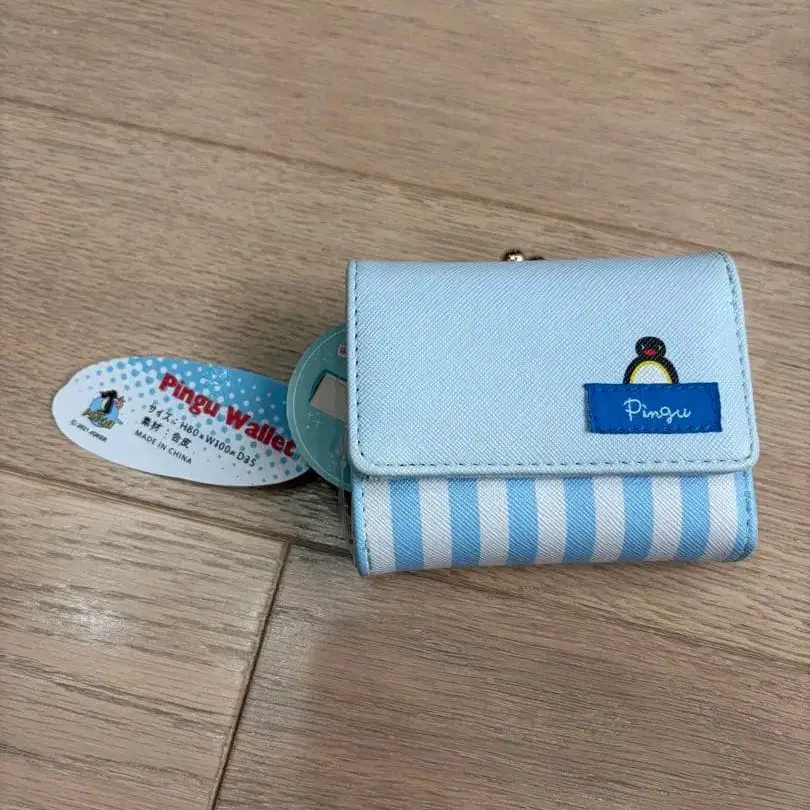 스카이블루 스트라이프 디자인의 Pingui 지갑, 동전 지갑 포함 기능적.