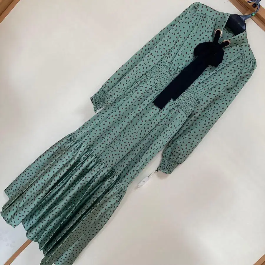manana suerte 롱 원피스 도트 도트 올 패턴 블랙 블랙