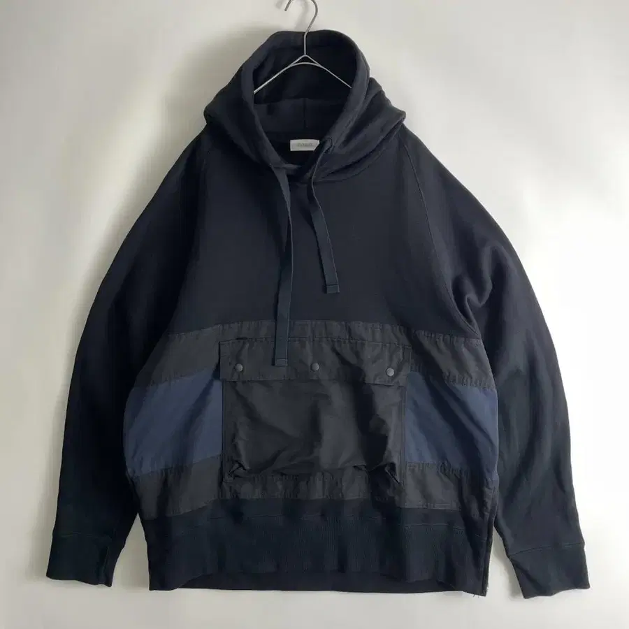 두께감 있는 코튼 원단과 아웃도어 아우터 쉘과 같은 코튼 나일론 원단의 절개 디자인이 특징인 오버 후드티. 아우터로 단품 착용해도 멋스러우며, 이너 레이어드 코디네이트 시에도 시선을 사로잡는 프론트 디자인을 즐길 수 있습니다. 또한, 사이드에는 지퍼가 있어 탈착이 용이하며, 시각적인 악센트 역할도 합니다.
