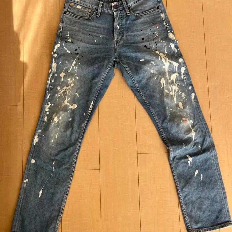 사이즈 - W 30인치 L 32인치 덴함 페인팅 청바지 매우 부드러운 청바지로 착용감이 뛰어납니다. 사이즈 허리 39cm (평평하게 놓았을 때 치수) 밑위 24cm 인심 77.5cm *개인 측정으로 인한 오차가 있을 수 있습니다.