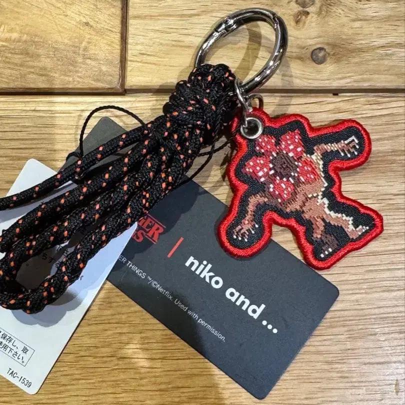 niko and와의 콜라보 상품입니다. 오늘 발송 가능합니다. demogorogon 스트레인저 싱스의 빨간색 캐릭터 자수 키링, 패브릭 소재로 택 포함. 오늘, 새해 첫날 출시