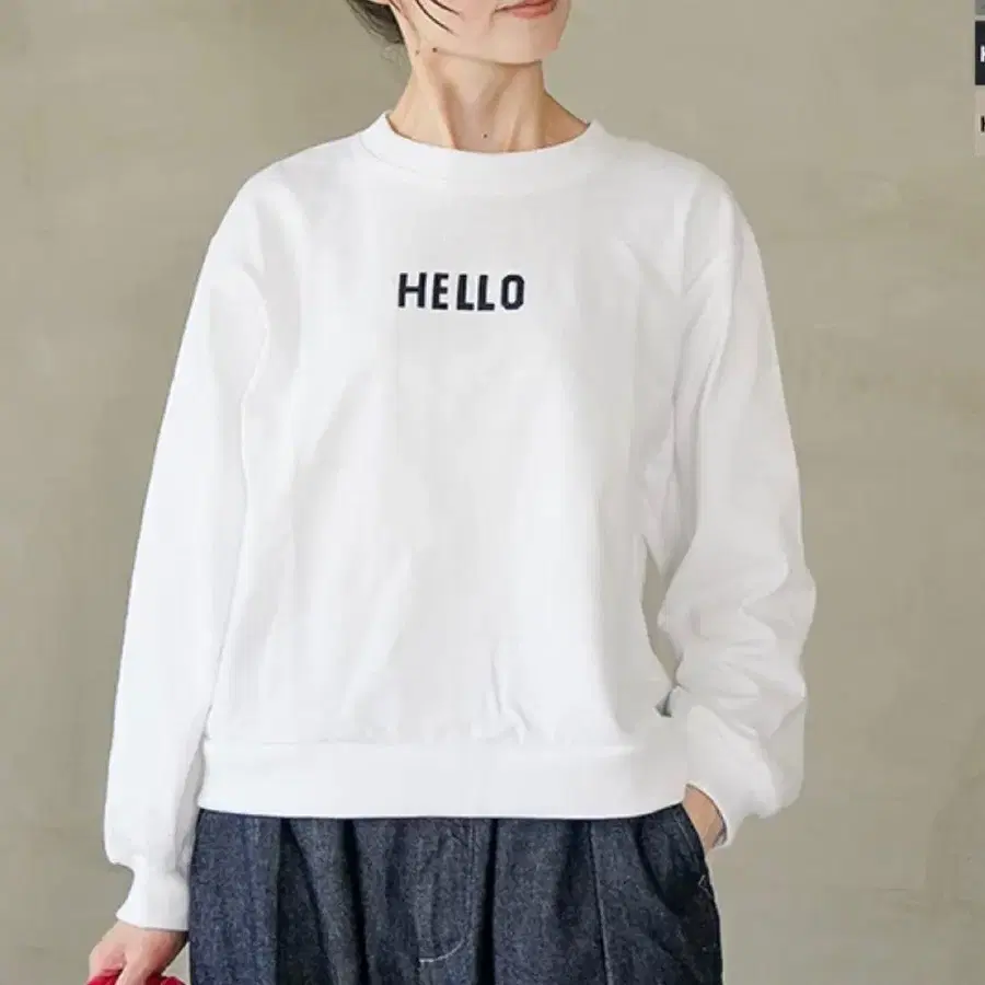[소라모나] 펜네 천축 베이직 프린트 맨투맨 화이트 프리 사이즈