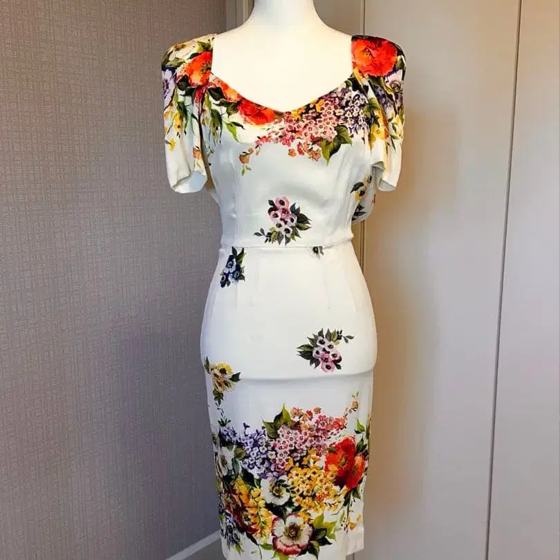 DOICE GABBANA 럭셔리한 꽃무늬 디자인의 무릎 기장 원피스입니다. 슬림하고 타이트한 디자인입니다. 클리닝 얼룩 제거를 마쳤지만, 제거되지 않은 노란 얼룩, 얼룩이 있었습니다. 이미지를 확인하신 후 구매해 주세요. - 색상: 화이트 - 디자인: 플라워 프린트 - 스타일: 타이트 - 소매: 반팔 - 기장: 무릎 기장 방문해 주셔서 감사합니다.