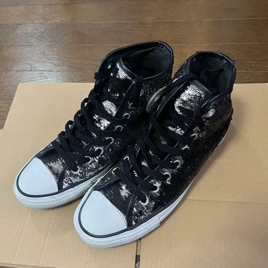• [ 새상품급 ] Converse 블랙 스팽글 하이컷 사이즈 USA 7.5