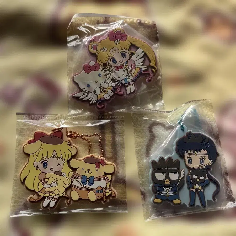자동 번역되었어요. 원문보기세일러문과 헬로키티의 콜라보 러버 키링, 컬러풀하고 귀여운 디자인.