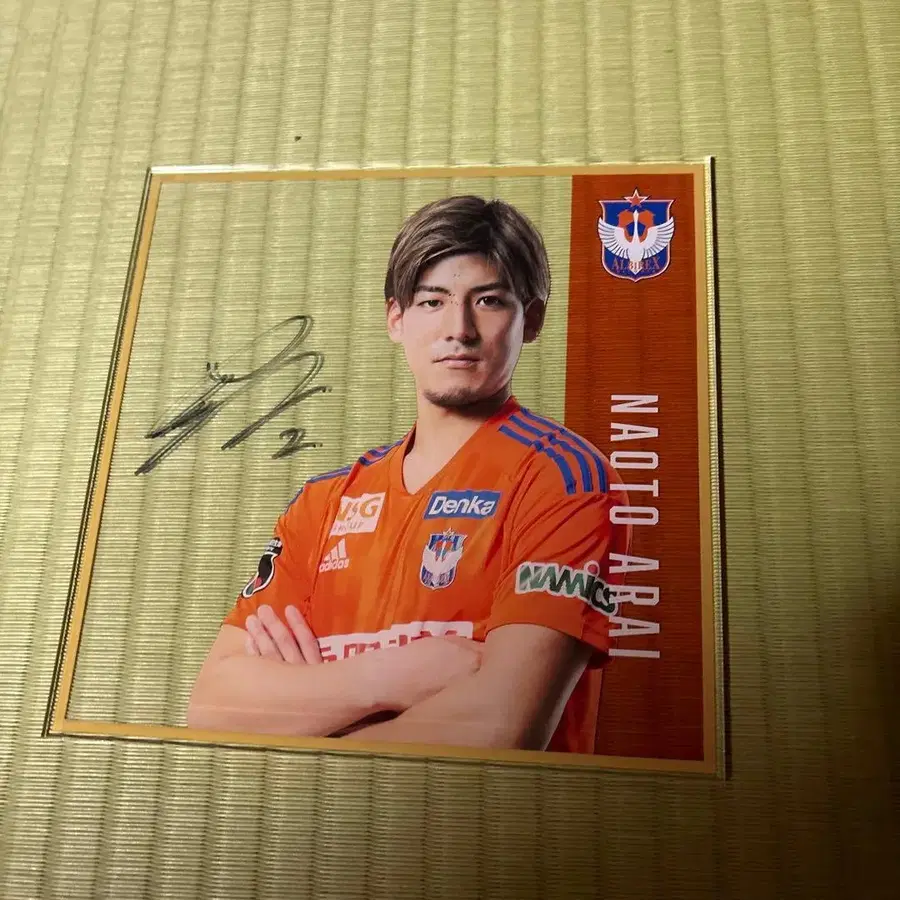 오렌지색 유니폼을 입은 ARAI NAOTO 선수의 사인 포함 포트레이트. - 선수명: 신이 나오토 - 팀 컬러: 오렌지 - 사인: 있음 방문해 주셔서 감사합니다.