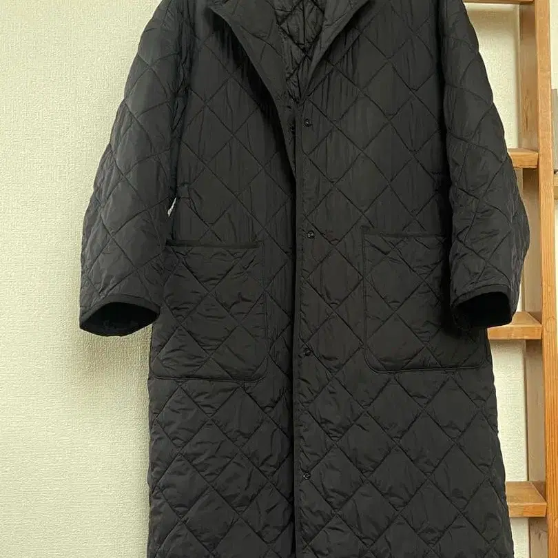블랙 퀼팅 롱 코트