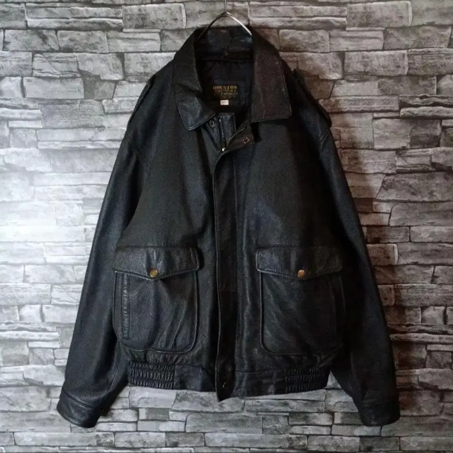 노포 밀리터리 브랜드 [ HOUSTON ]의 리얼 가죽 플라이트 자켓입니다. 시크한 검은색 가죽을 사용한 변치 않는 디자인은 유행을 타지 않습니다. 스테디셀러 스타일은 라이더 스타일에도 타운 유스에도 착용 OK. 오래 입을수록 몸에 익숙해지는 가죽의 에이징을 즐길 수 있습니다(^^ ♪ 사이즈도 크게 나왔습니다. 빅 루즈하게 입고 싶은 남성 빈티지 팬들에게도 추천합니다(^^ ♪