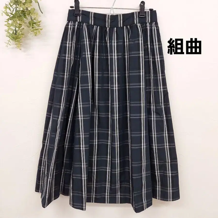 쿠미쿄쿠 네이비 계열 체크 플레어 스커트