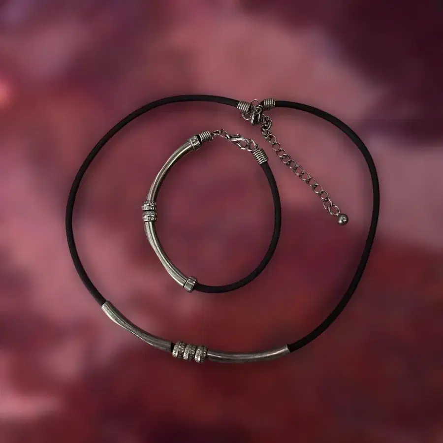 실버와 러버의 목걸이와 팔찌 세트