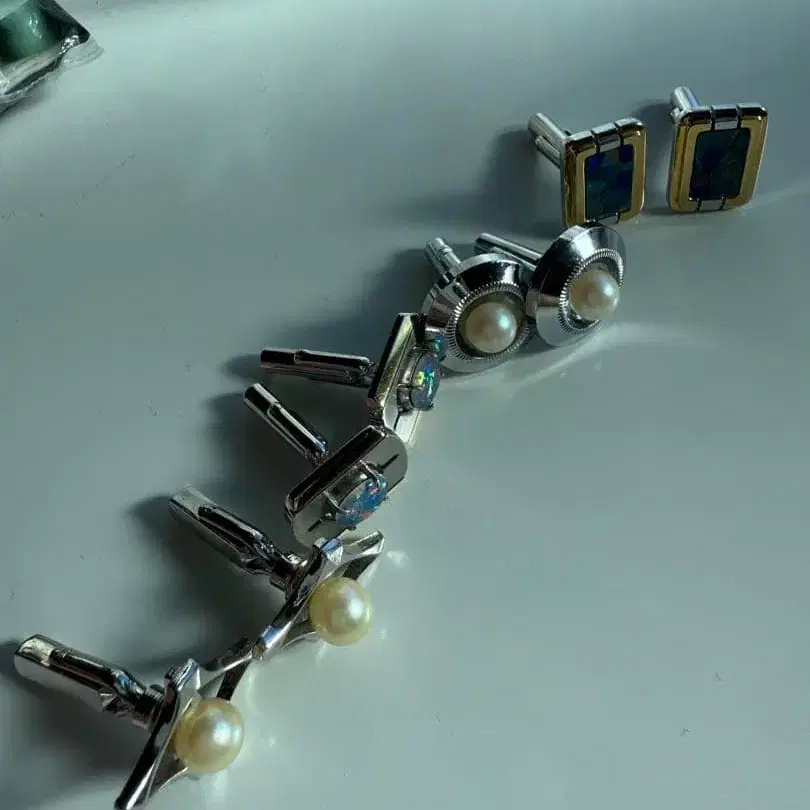 펄과 오팔풍 스톤의 커프스 세트. - 디자인: 펄 장식 커프스 - 소재: 금속제 - 디자인: 스타일리시한 모양 - 디자인: 오팔풍의 스톤 장식 커프스 - 색상: 실버와 골드의 콤비네이션 방문해 주셔서 감사합니다.