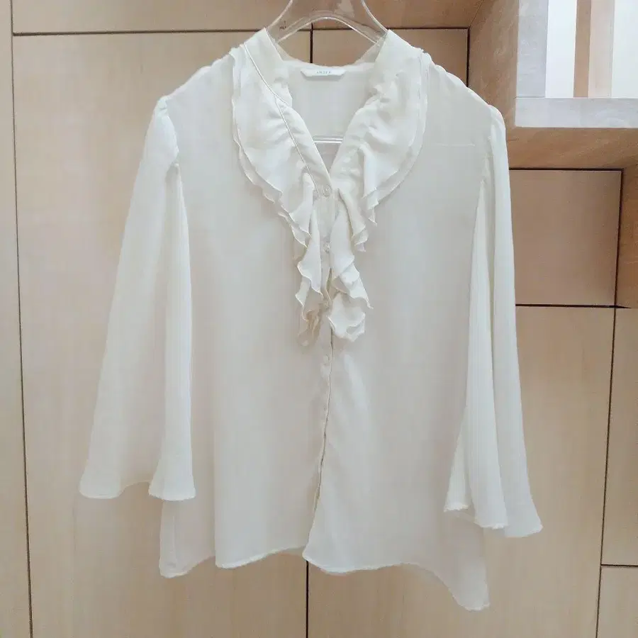 화이트 슬리브리스 셔츠 프릴 디자인 aga