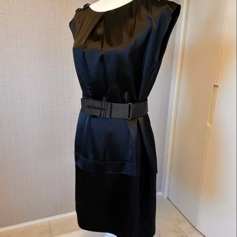 광택이 나는 새틴 소재의 블랙 원피스입니다! 허리 벨트와 어깨의 비쥬가 악센트인 엘레강트한 디자인입니다. 살짝 여유 있게 입으시고 벨트로 조절하는 타입입니다. 무릎이 살짝 보이는 미니 기장입니다. 거의 입지 않아 상태는 좋지만, 개인 보관이므로 이해하신 후 구매 부탁드립니다. - 색상: 블랙 - 스타일: 슬리브리스 - 디자인: 허리 벨트 포함 - 특징: 어깨 부분에 장식 있음 방문해 주셔서 감사합니다.