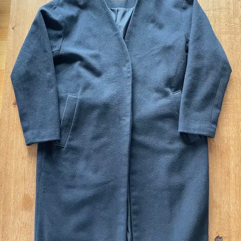 자유구 울 코트 38 M 사이즈 노카라 마테코 네이비