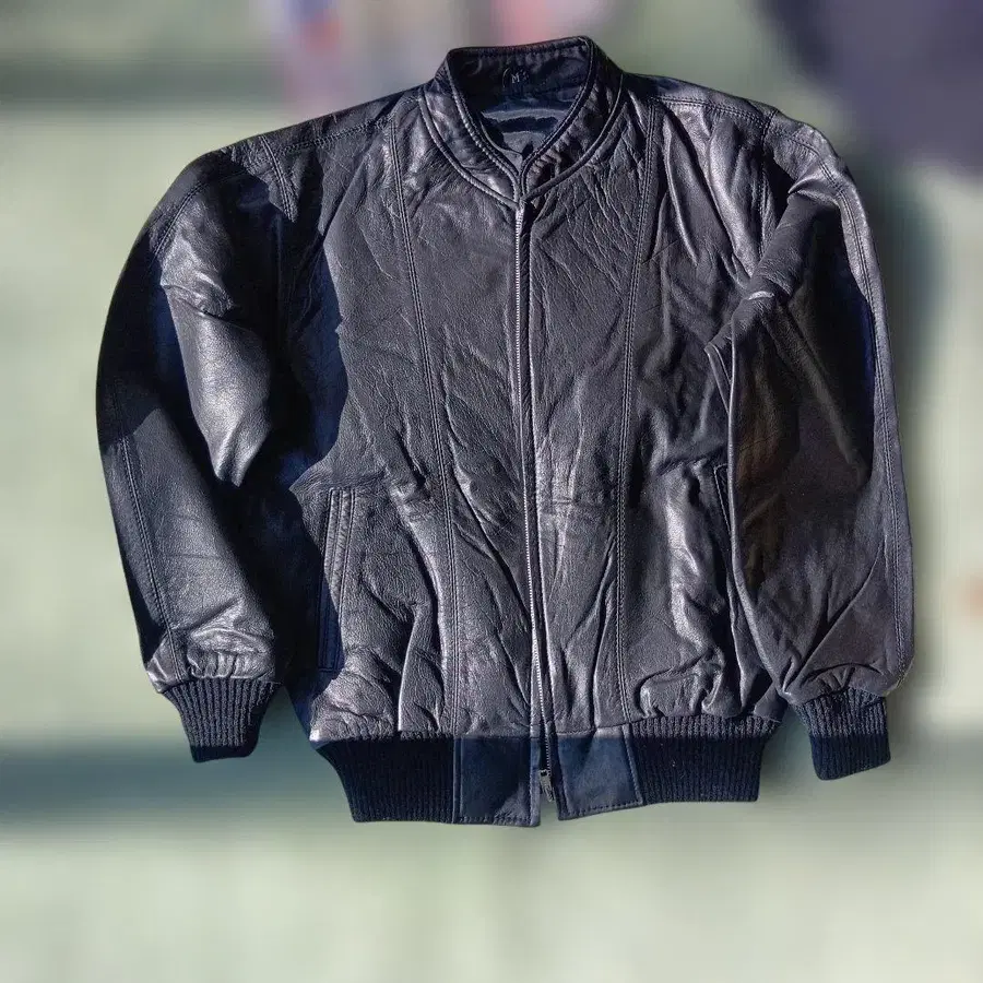 블랙 가죽 자켓, 집업 디자인, M 사이즈. - 색상: 블랙 - 소재: 가죽 - 사이즈: M - 디자인: 집업, 리브 니트 소매 방문해 주셔서 감사합니다.