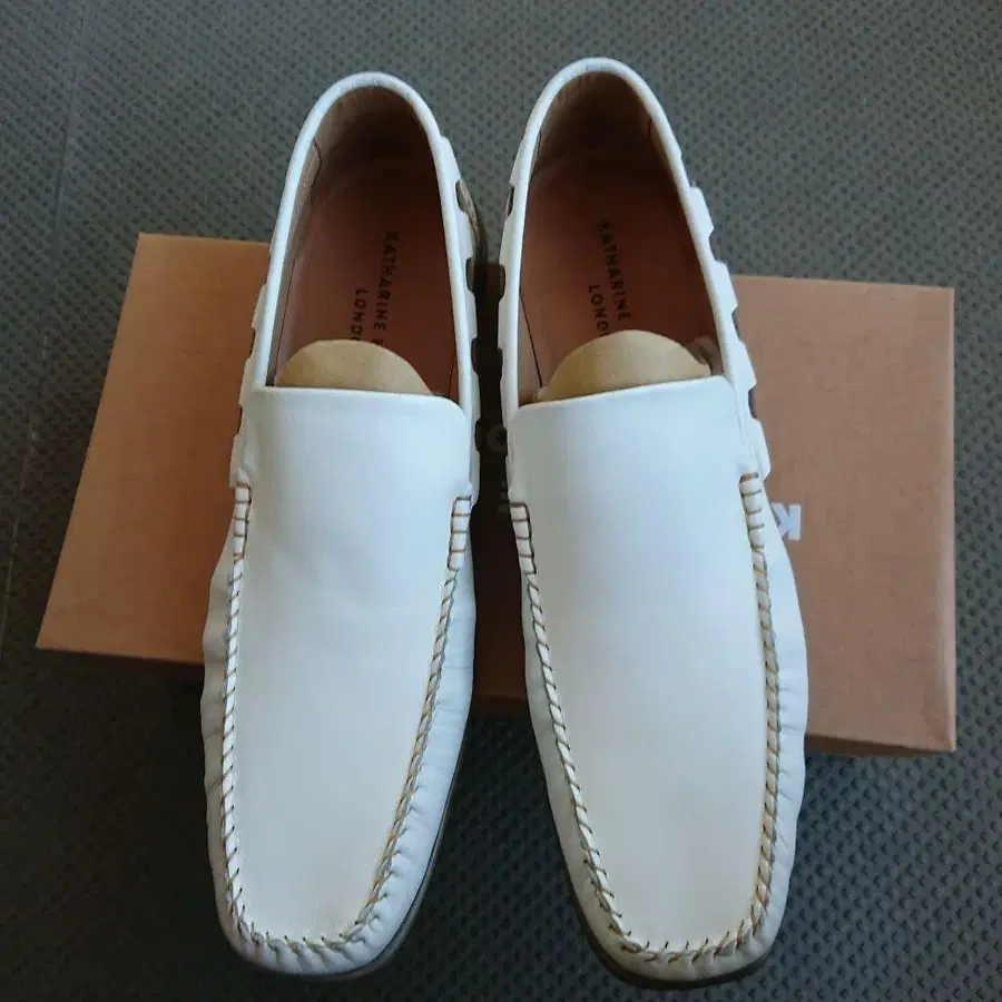 캐서린 햄넷의 화이트 가죽 로퍼입니다. 세련된 디자인과 멋진 스티치가 특징입니다. 정가는 15000엔 ~ 20000엔입니다. - 브랜드: KATHARINE HAMNETT LONDON (캐서린 햄넷 런던). 종류: 로퍼 소재: 천연 가죽. 가죽 사이즈감: 26.5cm