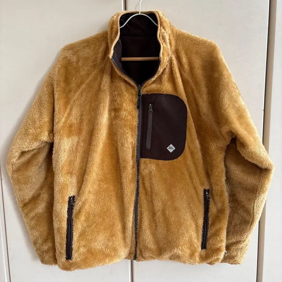 베이지와 브라운의 리버서블 자켓, 프론트에 지퍼 포켓 부착. - 브랜드: gym master - 색상: 베이지와 브라운의 리버서블 - 포켓: 프론트 지퍼 포켓 - 소재: 플리스? 방문해 주셔서 감사합니다. 사이즈 - M