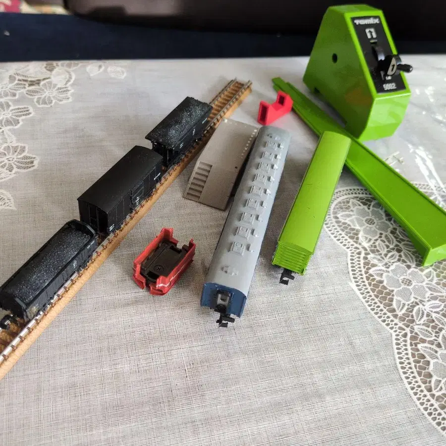 다채로운 색상의 철도 모형 부품과 레일 세트. - 아이템 타입: 철도 모형 - 색상: 블랙, 빨간색, 파랑, 그레이 - 부속품: 레일, 차량 부품 석탄 3량 세트의 가격을 고려해 주세요. 방문해 주셔서 감사합니다.