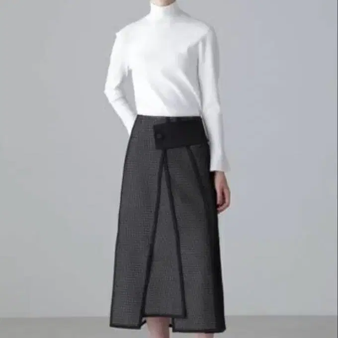 메종드소일 스커트 블랙 x 화이트 체크 무늬 울