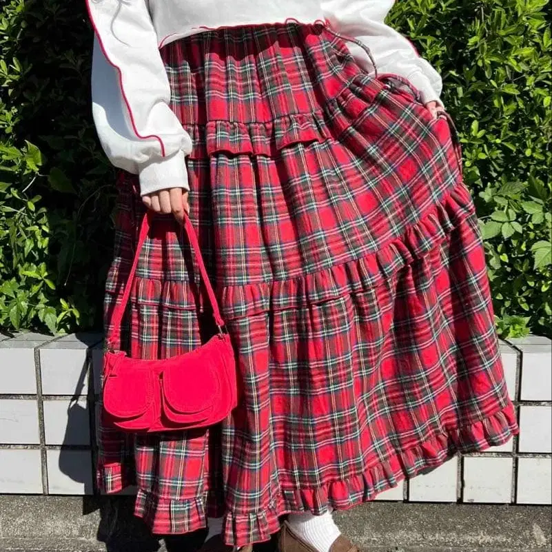W ♡ C WC WEGO 더블씨 위고 체크 스커트 롱 스커트 캉캉 스커트