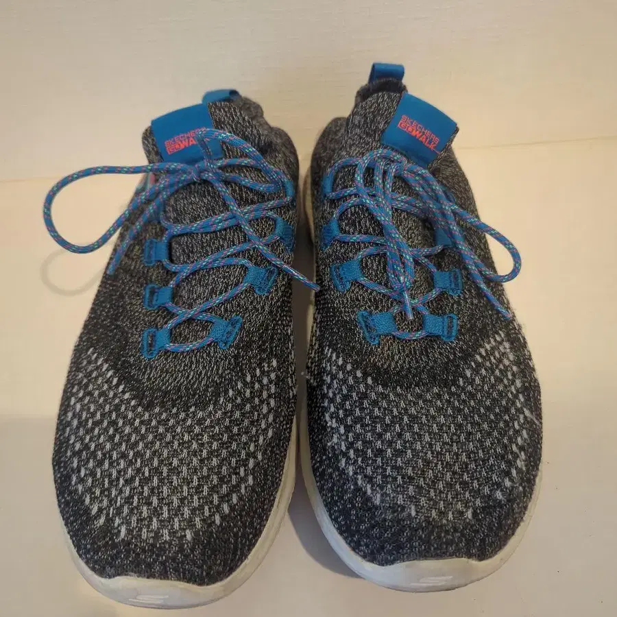 니트 어퍼와 화이트 밑창의 러닝화, 쾌적한 착용감. - 브랜드: Skechers - 색상: 블랙/블루 - 스타일: 러닝화 - 밑창: 화이트 밑창 - 디자인: 니트 어퍼 질문, 가격 상담이 있다면 연락 부탁드립니다. 사진이 전부입니다. 방문해 주셔서 감사합니다.