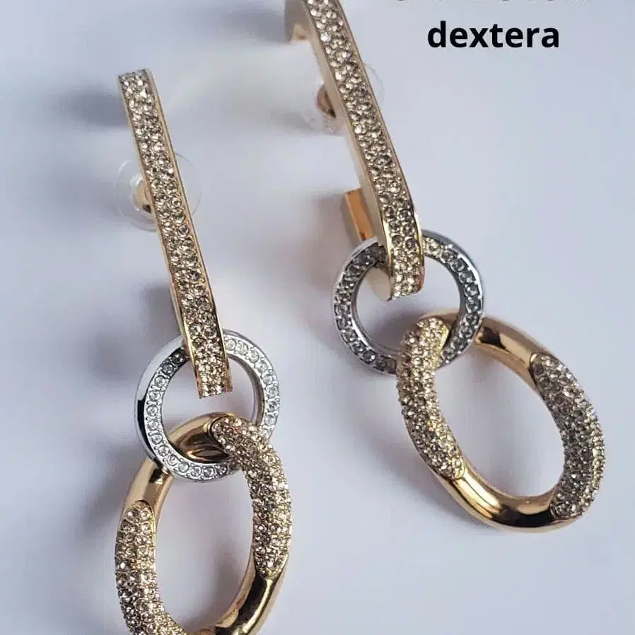SWAROVSKI 스와로브스키 dextera 드롭 인터링크 후프 귀걸이 주얼리 스와로브스키 크리스탈이 빛나는 골드와 실버의 링크 체인이 흔들리는 드롭 귀걸이입니다. 사이즈 세로 7.4cm 40.6g 자택 보관품이므로 이해하시는 분께 부탁드립니다. #스와로브스키크리스탈 #swarovski #dextera #swarovskijewelry #코스튬주얼리 #비즈귀걸이