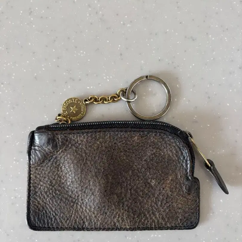 IL BISONTE 천연 가죽 코인 케이스 브라운