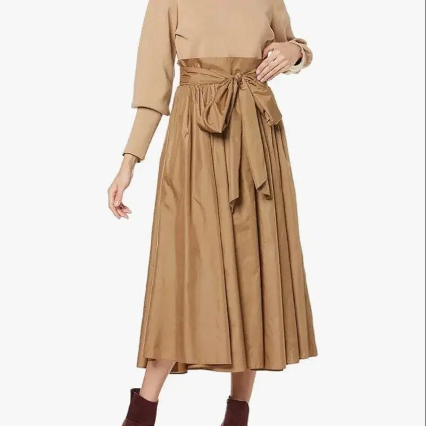 자동 번역되었어요. 원문보기허리 리본이 달린 베이지 타프타 도킹 원피스, 심플하고 엘레강트한 디자인.