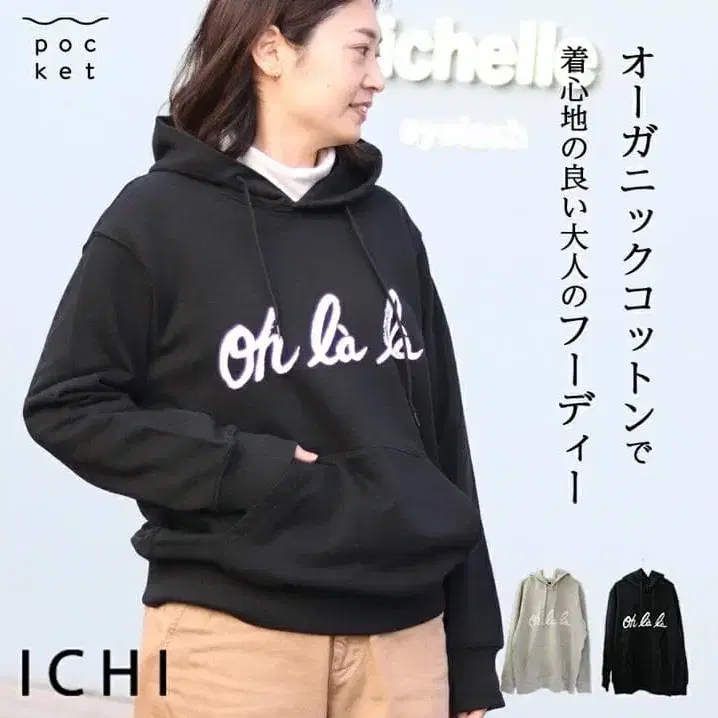 ICHI 오가닉 코튼 소재의 후드 부착 후드티입니다.