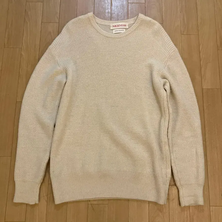 NICENESS의 데크 스웨터 GRAHAM, 사이즈 M입니다. 어깨 너비 52, 소매 길이 60, 가슴 너비 50, 기장 71. 개인 측정.