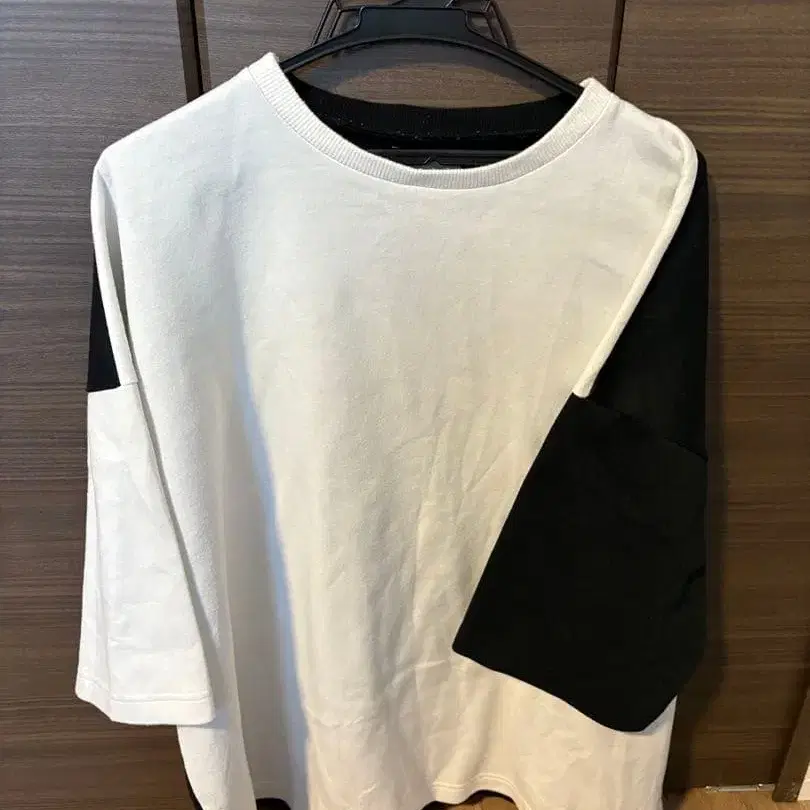 바이컬러 화이트와 블랙의 긴팔 T셔츠, 라운드넥 디자인. - 브랜드: ANGENEHM - 색상: 화이트/블랙 - 디자인: 바이컬러 - 스타일: 라운드넥 - 소매 길이: 긴팔 방문해 주셔서 감사합니다.