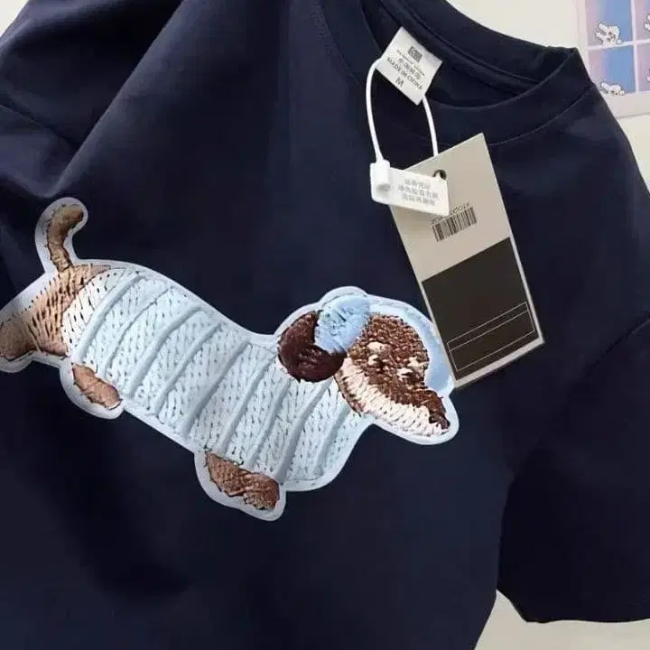 네이비 색상의 T셔츠에 강아지 자수가 들어간 디자인. - 색상: 네이비 - 디자인: 강아지 자수 - 소재: 코튼 혼방 방문해 주셔서 감사합니다.