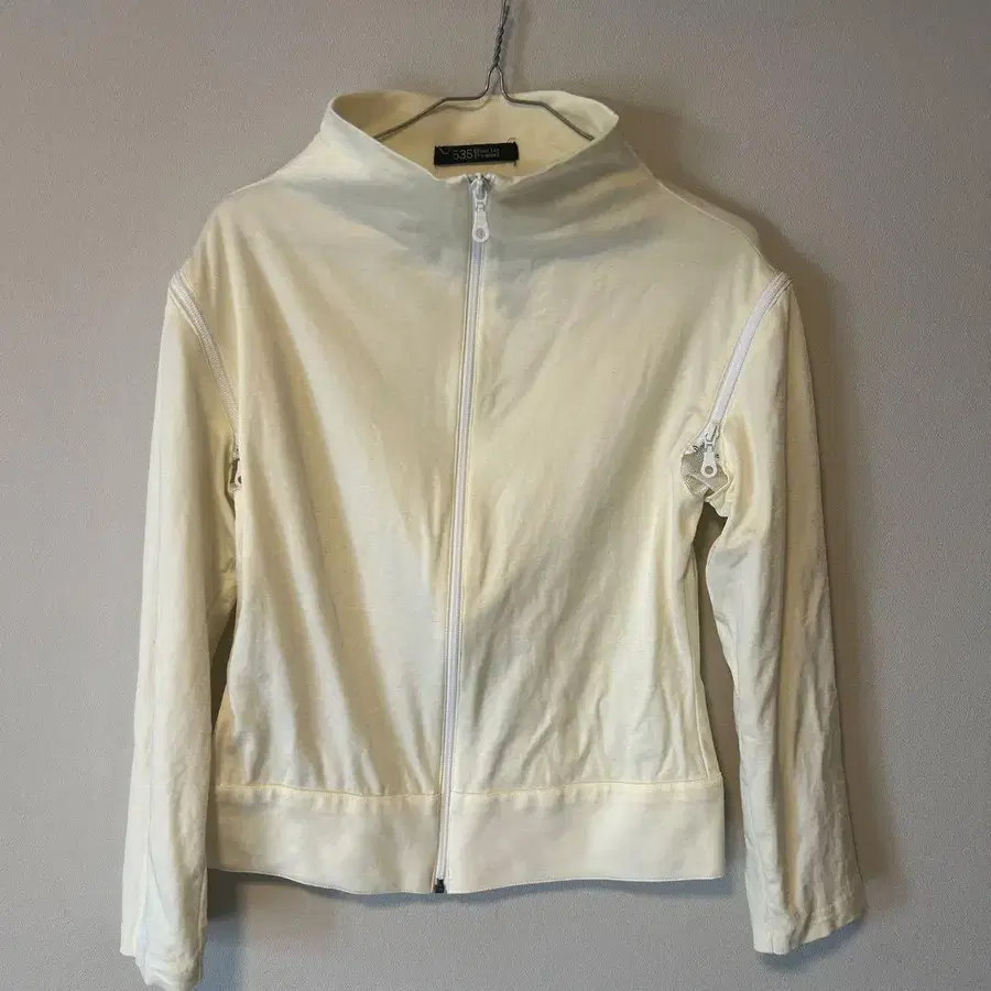 지퍼가 달린 후드와 소매 포켓이 특징인 크림색 풀 집업 후드티. - 브랜드: 5351 Pour Les Femmes - 색상: 크림색 - 디자인: 지퍼가 달린 후드와 소매 지퍼 포켓 - 스타일: 풀 집업 후드티 방문해 주셔서 감사합니다.