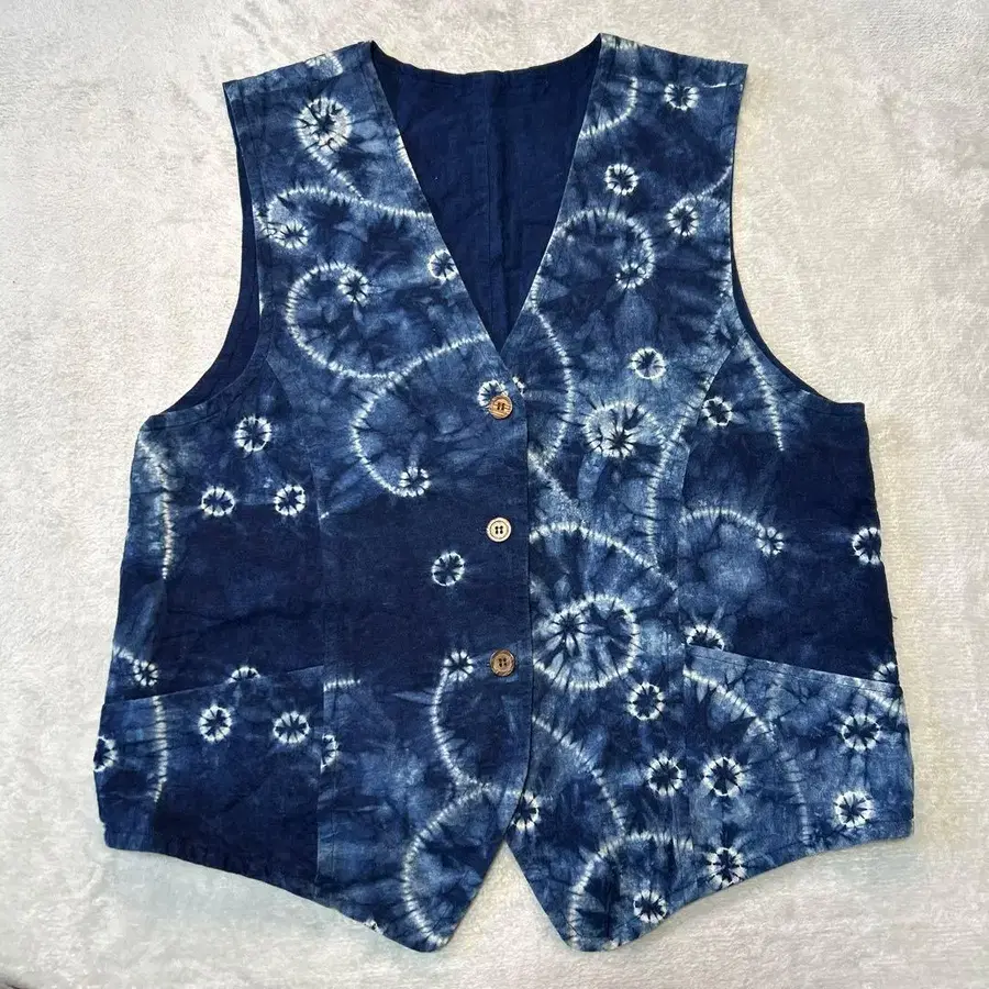 기장 56cm 가슴 너비 52cm 네이비 나염 베스트 타이다이 염색 인디고 블루 V넥 슬리브리스 베스트 ♪